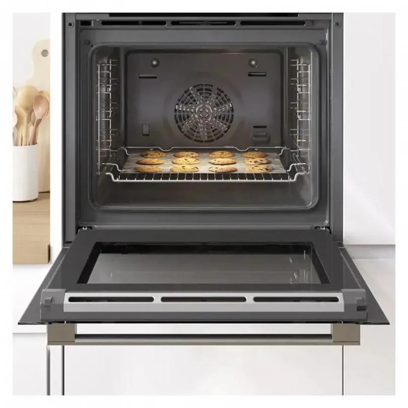 Электрическая духовка BOSCH HBG634BW1 с независимым управлением оснащена сенсорными переключателями и электронным таймером. Мощность подключения составляет 3600 Вт, объем - 71 литр. Духовка имеет класс энергоэффективности A+ и максимальную температуру нагрева 300 °C. Внутреннее покрытие выполнено из БИО-керамической эмали с каталитической очисткой. В комплектацию входит конвекция и электрический гриль. Дисплей отображает информацию о времени и режимах работы. Присутствуют индикаторы остаточного тепла и многофункциональное управление с 12 программами приготовления. Автоматический разогрев и функция подогрева посуды дополняют основной набор возможностей. Дверца с тремя стеклами имеет максимальную температуру поверхности 40 °С. Освещение обеспечивается галогенной лампой. Имеется защитное отключение и блокировка от детей. Длина кабеля - 1.2 м. Цвет корпуса белый. Габариты (ШхГхВ): 59.4 х 54.8 х 59.5 см, размеры ниши для встраивания (ШхГхВ): 56.8 x 55 x 59.5 см. Вес нетто составляет 34.7 кг.