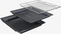 Электрический духовой шкаф BOSCH HBG7764B1 оснащен сенсорным управлением и имеет объем 71 литр. Мощность подключения составляет 3600 Вт, максимальная температура нагрева достигает 300 °С. Внутреннее покрытие выполнено из эмали легкой очистки, предусмотрена пиролитическая система очистки. Духовка оборудована конвекцией и электрическим грилем. Имеется дисплей, таймер и часы. Встроенный термощуп обеспечивает контроль готовности блюд. Дверца открывается вниз, ее внутренняя поверхность полностью стеклянная. Освещение светодиодное. Модель содержит 14 программ приготовления и функцию автоматического быстрого разогрева. Присутствует вентилятор охлаждения и защита от детей. Доступно управление с мобильного устройства. Цвет черный. Габариты (ШхГхВ): 59.4 х 54.8 х 59.5 см, размеры ниши для встраивания: 56 x 55 x 58.5 см.