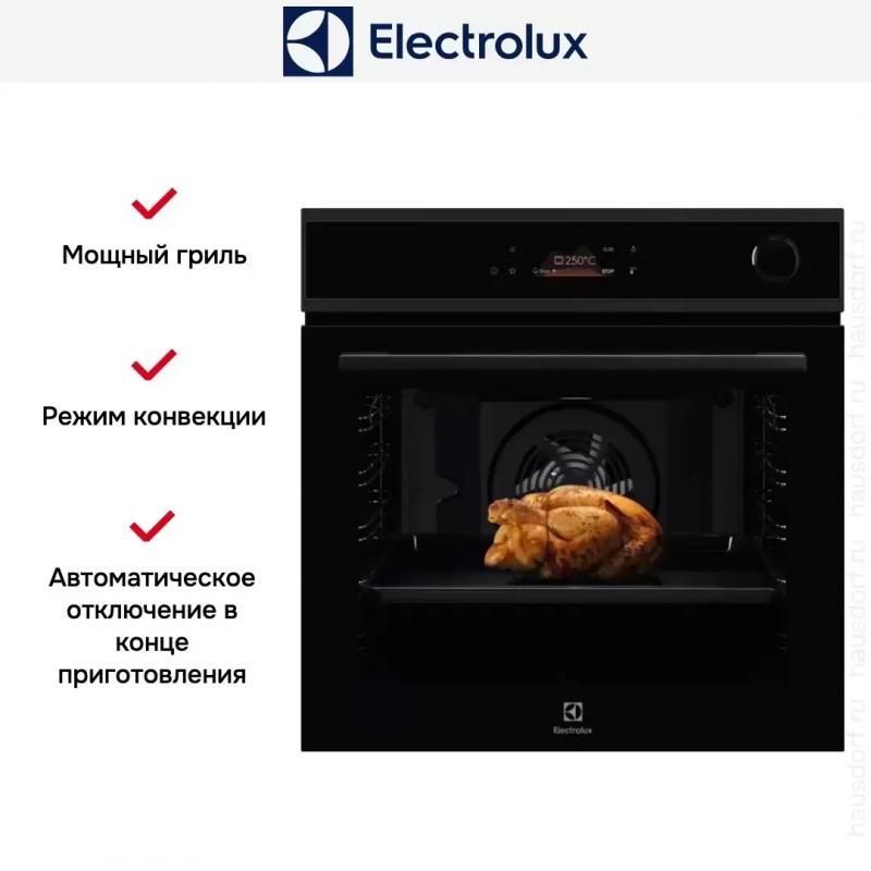 Духовой шкаф ELECTROLUX EOC8P39H электрический, сенсорное управление. Мощность подключения 3390 Вт, максимальная температура нагрева 300 °С. Внутреннее покрытие из эмали, пиролитическая очистка. Электрический гриль, режимы конвекции и приготовления на пару. Автоматический разогрев, отсрочка старта, таймер. Дисплей, защита от детей, звуковая индикация. Габариты ниши для встраивания 56x55x59 см. Цвет черный. Класс энергоэффективности A. Размеры 59.6х56.9х59.4 см вес 33.3 кг.