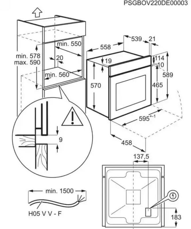 Духовой шкаф ELECTROLUX EOD5H70BX электрический. Мощность подключения 2990 Вт, максимальная температура нагрева 275 °С. Тип гриля электрический, режимы включают гриль, конвекцию и размораживание. Функции состоят из отсрочки старта, таймера и часов. Особенности включают электронный таймер, дисплей и вентилятор охлаждения. Количество программ духового шкафа 9. Дверца открывается вниз, содержит 2 стекла с подсветкой мощностью 40 Вт. Длина кабеля 1.6 м, присутствует звуковая индикация. Цвет черный/нержавеющая сталь. Класс энергоэффективности A. Габариты 59.4x56.9x59.4 см.