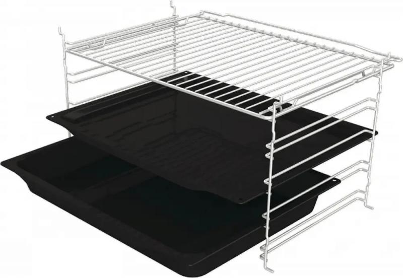 Электрическая духовка GORENJE BOS6737E03WG оснащена независимым управлением с утапливаемыми поворотными переключателями. Мощность подключения составляет 3500 Вт, класс энергоэффективности A. Объем камеры 77 литров с максимальной температурой нагрева 300 °С. Внутреннее покрытие выполнено из пиролитической эмали, предусмотрена очистка паром. Имеется конвекция и электрический гриль. Дисплей, часы и электронный таймер входят в комплектацию. Многофункциональная духовка содержит 12 программ работы. Присутствует вентилятор охлаждения, дверца открывается вниз, имеет полностью стеклянную внутреннюю поверхность и два стекла. Подсветка осуществляется одной лампой, есть звуковая индикация. Размеры изделия 59.5 х 56.4 х 59.5 см, размеры ниши для встраивания 56 x 55 x 59 см. Вес составляет 27.8 кг.