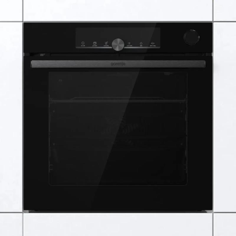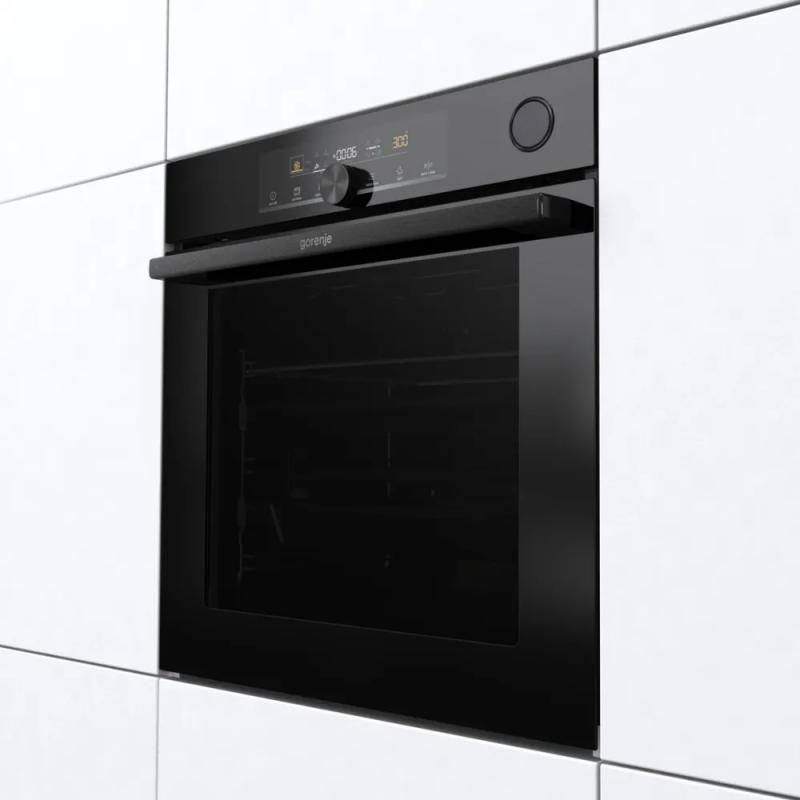 Встраиваемая электрическая духовка GORENJE BPSA6747A08BG с независимым управлением оснащена поворотными и сенсорными утапливаемыми переключателями. Мощность подключения составляет 3500 Вт, класс энергоэффективности A+. Объем камеры 77 литров, максимальная температура нагрева 300 °C. Внутреннее покрытие выполнено из пиролитической эмали, есть функция пиролитической очистки. Имеется конвекция и электрический гриль мощностью 2300 Вт. Духовка предлагает 23 программы приготовления, включая режим на пару с емкостью для воды объемом 0.13 л. Оснащена дисплеем, электронным таймером, системой защитного отключения и вентилятором охлаждения. Телескопические направляющие двухуровневого типа обеспечивают удобство использования. Дверца открывается вниз, имеет полностью стеклянную внутреннюю поверхность и состоит из четырех стекол. Подсветка представлена одной лампой. Цвет черный. Размеры (ШхГхВ): 59.5 х 56.4 х 59.5 см, размеры ниши для встраивания (ШхГхВ): 56 x 55 x 59 см. Вес 35.2 кг.
