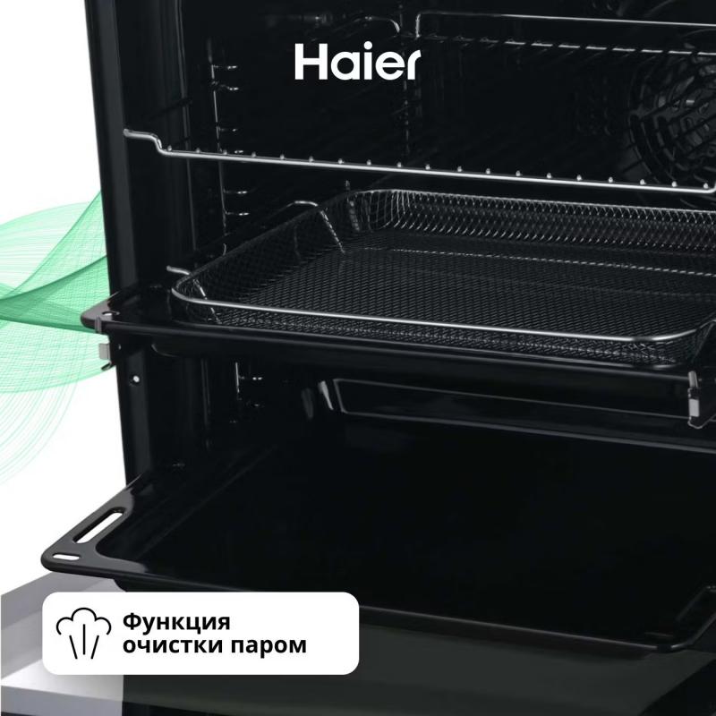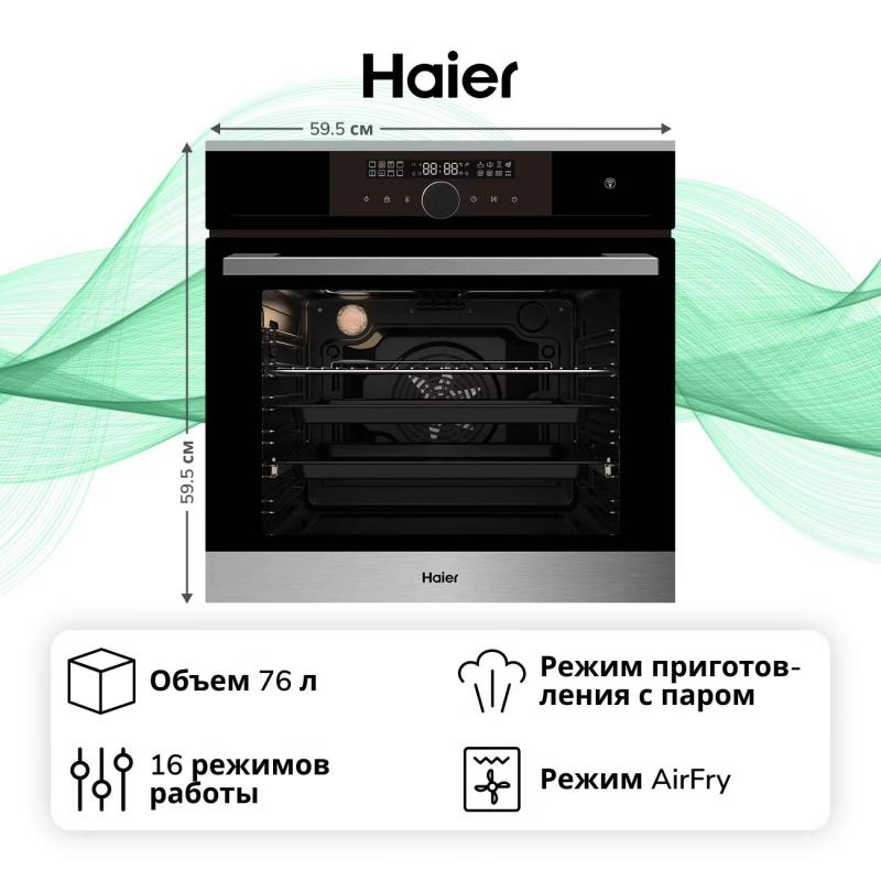 Электрический духовой шкаф Haier HOX-FP5RABX Black. Электрический тип указан после модели. Мощность 3150 Вт обеспечивает температуру нагрева от 50 до 250 градусов. Имеется функция приготовления на пару и режим Air Fry. Управление осуществляется поворотными регуляторами и сенсорной панелью. Дверца оснащена трехслойным стеклом и блокировкой. Размеры ниши составляют 600х564х560 мм. Цвет нержавеющая сталь. Класс энергоэффективности A. Габариты 595х595х567 мм вес 34 кг.
