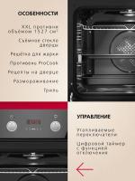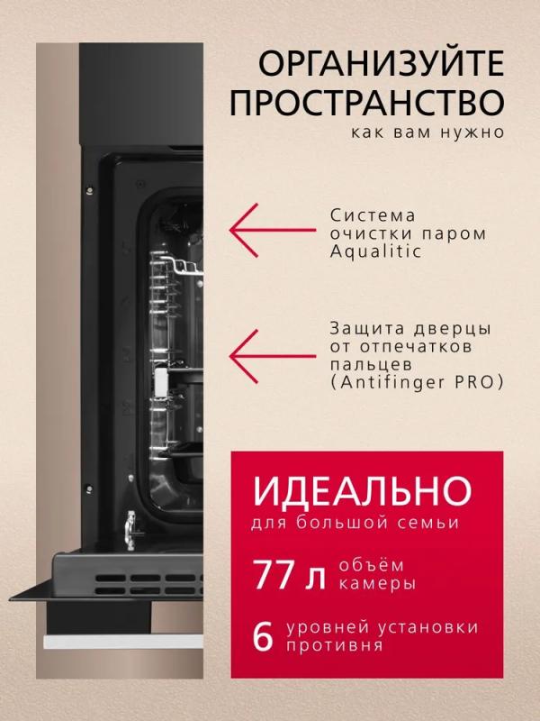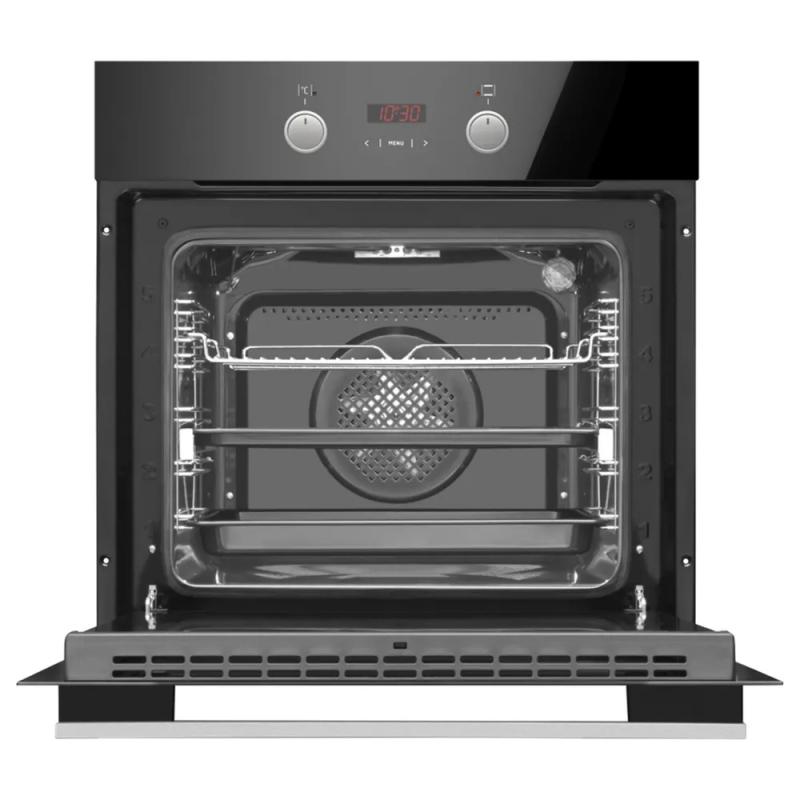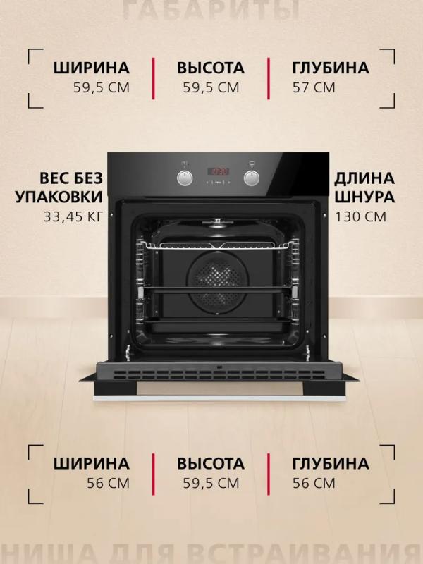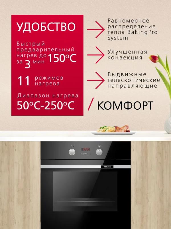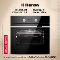 Электрический духовой шкаф Hansa BOES694003 имеет объем 77 литров и класс энергоэффективности A. Оснащен 11 режимами работы, включая конвекцию, гриль и размораживание. Управление осуществляется поворотными переключателями и сенсорной панелью из стекла. В комплект входят два противня для выпекания, глубокий противень, плоский противень, металлическая решетка и решетка для гриля. Предусмотрена система очистки паром и телескопические направляющие. Мощность устройства составляет 3600 Вт, длина сетевого кабеля - 1.5 м. Трехслойное стекло дверцы открывается вниз. Диапазон температур от 50 до 250 градусов. Гарантия производителя 1 год. Габариты прибора 595x595x575 мм, вес 48.4 кг.