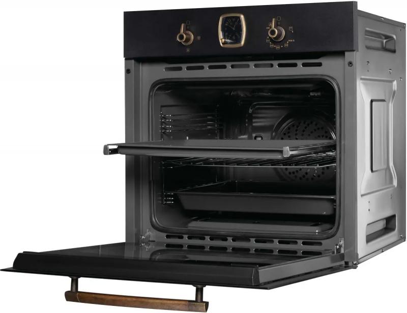 Газовая духовка KORTING OGG741CRN с независимым управлением оснащена поворотными переключателями и имеет класс энергоэффективности А. Объем камеры составляет 67 литров, максимальная температура нагрева достигает 250 °С. Внутреннее покрытие выполнено из эмали легкой очистки. Модель оборудована конвекцией и газовым грилем. Имеются часы и таймер механического типа. Присутствует вентилятор охлаждения и телескопические направляющие. Дверца открывается вниз и содержит три стекла. Освещение галогеновое, мощность лампы 25 Вт. В комплект входят противень для выпечки, глубокий противень и хромированная решетка. Размеры прибора составляют 59.5 x 58 x 59.5 см, размеры ниши для встраивания 56 x 56 x 59.5 см. Цвет черный.
