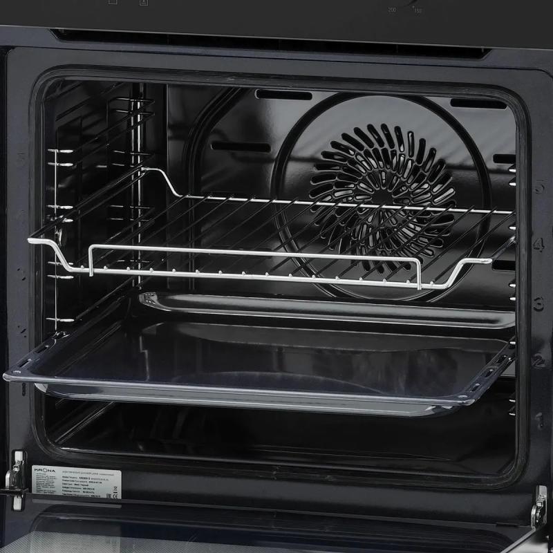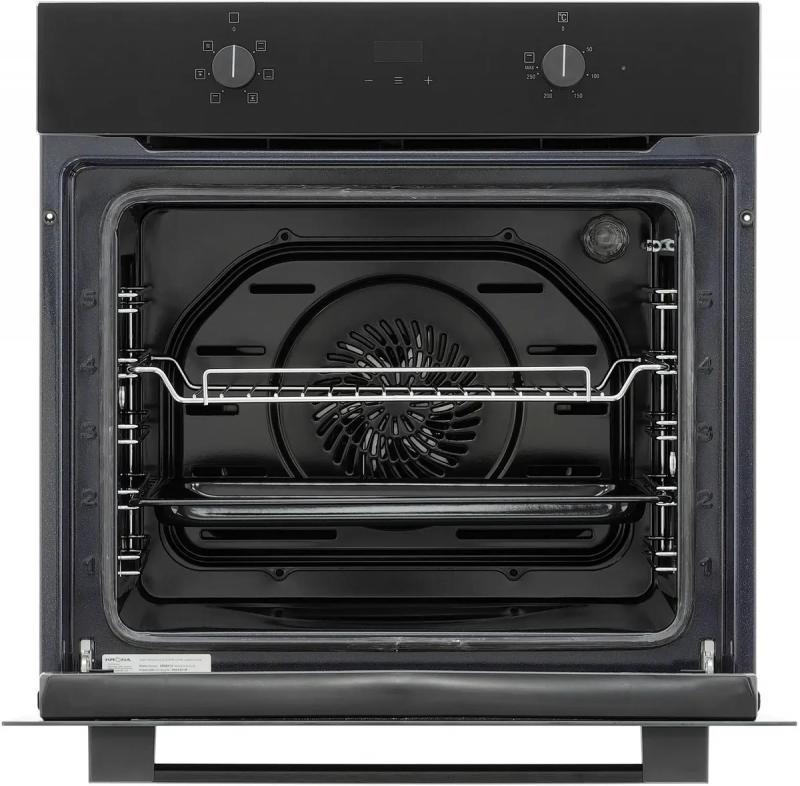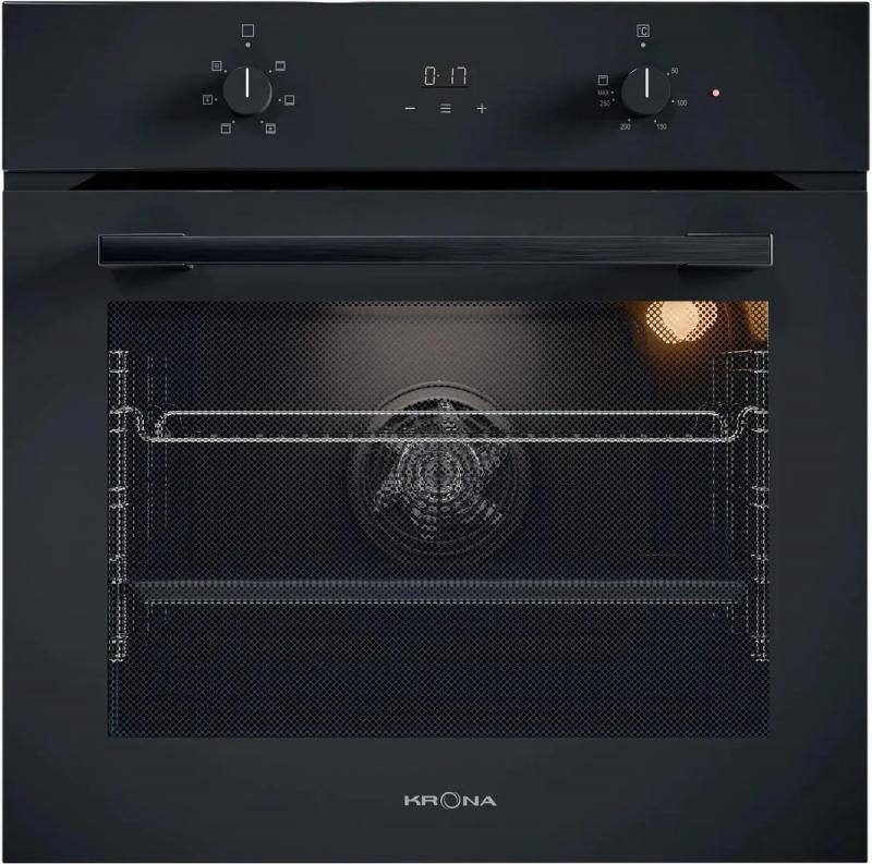 Духовой шкаф электрический KRONA Magnete 60 BL/BL. Тип управления механический с поворотными переключателями. Мощность подключения составляет 2650 Вт с возможностью нагрева до высоких температур. Имеется электронный таймер и функция отсрочки старта. Подсветка камеры осуществляется одной галогенной лампой мощностью 15 Вт. Дверца открывается вниз и оснащена двумя стеклами. Внутренняя поверхность полностью стеклянная для удобства ухода. Количество программ работы составляет 6. Обеспечена защита от детей и защитное отключение. Цвет черный. Класс энергоэффективности A. Размеры 59.5х56.7х59.5 см. Вес 27.38 кг.