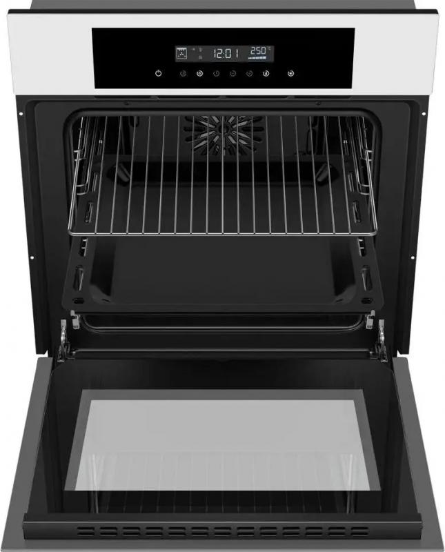 Электрический духовой шкаф MAUNFELD AEOD6063W оснащен сенсорным управлением и электронным таймером. Мощность подключения составляет 2400 Вт, максимальная температура нагрева достигает 250 °С. Имеется гидролизная очистка, электрический гриль мощностью 2300 Вт и функции конвекции, защиты от детей. Внутренняя поверхность выполнена из легкой эмали, дверца содержит три стекла и открывается вниз. Дисплей, вентилятор охлаждения и телескопические направляющие улучшают эксплуатацию. Цвет белый. Класс энергоэффективности A. Размеры 59.5 х 52.5 х 59 см, вес 30.98 кг.