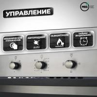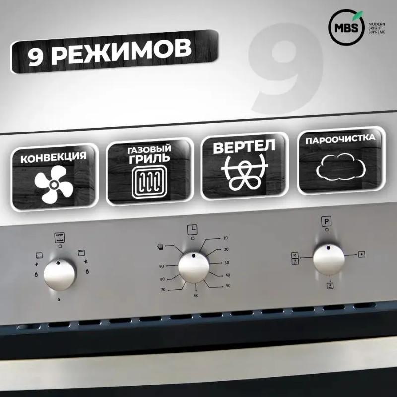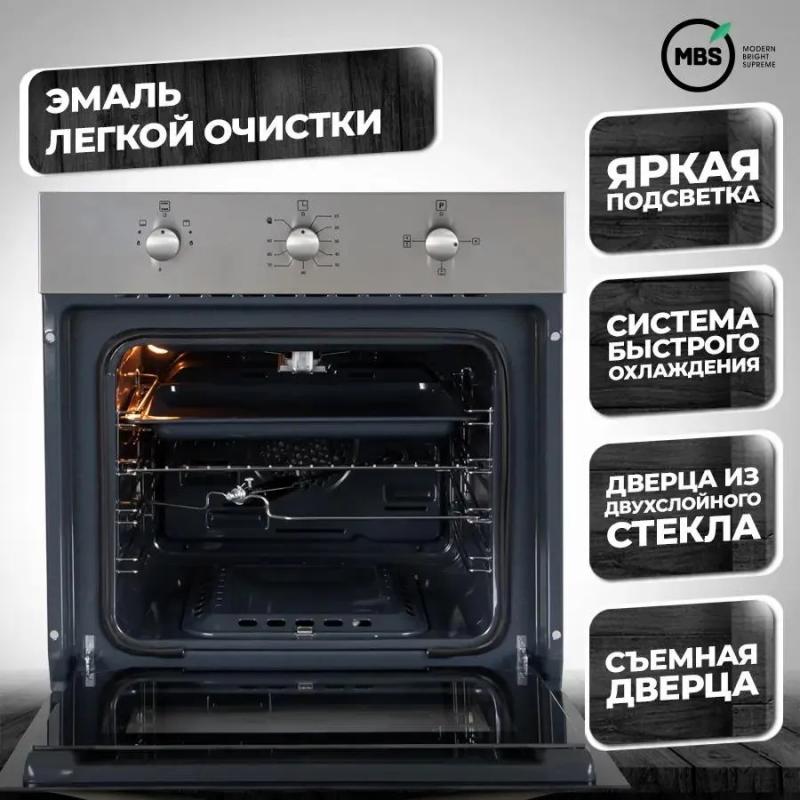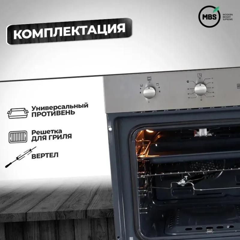 Духовой шкаф MBS DG-604 работает на газу и оснащен поворотными переключателями. Класс энергоэффективности A. Объем составляет 62 л, максимальная температура - 280 °С. Внутреннее покрытие выполнено из эмали легкой очистки, доступна гидролизная очистка. Газовый гриль поддерживает режимы конвекции и гриля. Функции включают таймер с механическим управлением и электроподжиг. Имеется звуковая индикация, система газ-контроля, вентилятор охлаждения и вертел. Дверца открывается вниз, состоит из двух стекол, внутренняя поверхность полностью стеклянная. Подключение к электросети осуществляется кабелем без вилки. Размеры: 60 х 57.8 х 60 см, вес - 29.9 кг.