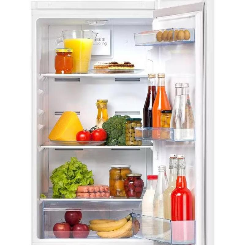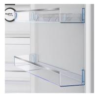 Холодильник Beko B1RCNK272G имеет две камеры с общим объемом 270 литров и системой No Frost. В холодильном отделении расположены три полки из закаленного стекла, две из которых регулируются по высоте, три полки на двери и один ящик для овощей. Морозильная камера включает три пластиковых ящика и обеспечивает мощность замораживания до 5 кг/сутки. Модель оснащена электронным управлением, светодиодным освещением, звуковой сигнализацией открытой двери и повышения температуры. Имеются режимы суперзамораживания, суперохлаждения, быстрого охлаждения и отпуск. При отключении питания поддерживает температуру до 18 часов. Класс энергоэффективности A+, годовое потребление электроэнергии 267 кВтч. Уровень шума составляет 39 дБ. Габариты: высота 171 см, ширина 54 см, глубина 60 см. Вес 55 кг.