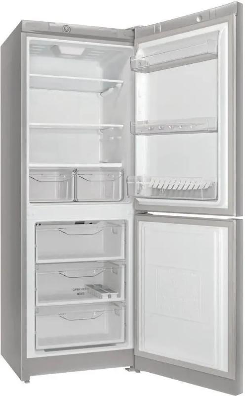 Холодильник INDESIT DS 3160 G с нижним расположением морозильной камеры имеет общий объем 291 литр и полезный объем 269 литров. Климатический класс N, ST позволяет работать при температуре от +16°C до +38°C. В холодильном отделении объемом 183 литра установлено 3 стеклянные полки и 2 ящика, реализована капельная система размораживания. Морозильная камера объемом 108 литров оснащена ручной системой размораживания, содержит 1 полку и 2 ящика, способна замораживать до 4 кг продуктов в сутки. Управление механическое, предусмотрена возможность перевешивания дверей. Хладагент R600a, один компрессор стандартного типа. Годовое энергопотребление составляет 324 кВт*ч, класс энергоэффективности A. При отключении электричества сохраняет холод до 18 часов. Уровень шума 39 дБ. На дверце расположены 3 полки, корпус выполнен из металла с LED подсветкой внутри. Размеры холодильника 60х167х62 см, вес 58.2 кг.
