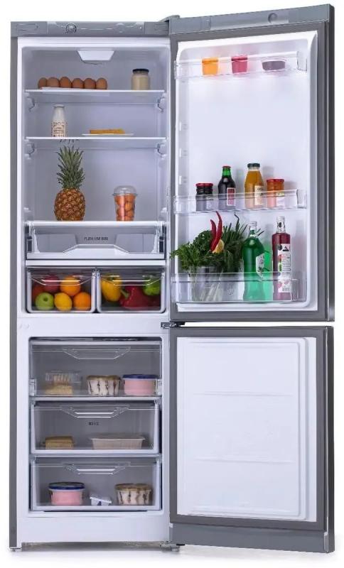 Холодильник INDESIT DS 3180 G с механическим управлением имеет двухкамерную конструкцию с нижним расположением морозильной камеры. Общий объем 332 литра, полезный объем 310 литров. Холодильное отделение содержит 3 закаленных стеклянных полки и 3 ящика, система размораживания капельная. Морозильная камера включает 1 полку и 2 ящика, размораживание ручное. Мощность замораживания достигает 4 кг/сутки. Климатический класс N, ST позволяет работать при температуре от +16°C до +38°C. Уровень шума составляет 39 дБ. Энергопотребление класса A, годовое потребление 342 кВт*ч. При отключении электричества сохраняет температуру до 18 часов. Используется хладагент R600a. Двери металлические с LED подсветкой, направление открывания вправо, предусмотрена возможность перевешивания. Размеры прибора 60х185х62 см, вес 65 кг.