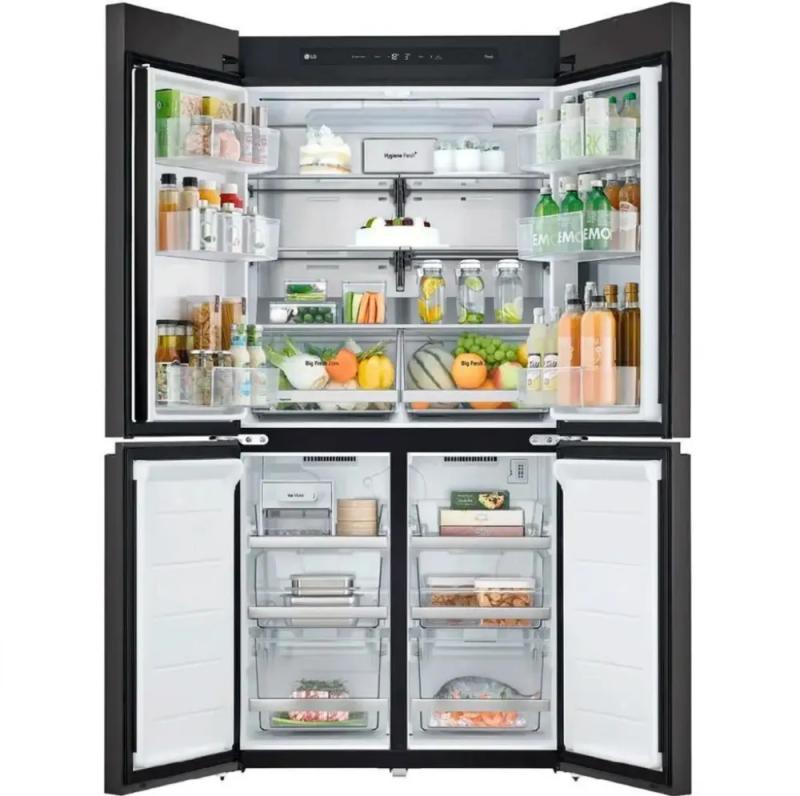 LG GR-A24FQAKM представляет собой инверторный холодильник с четырьмя дверями и системой полного No Frost. Управление осуществляется сенсорным способом, предусмотрен один компрессор. Общий объем составляет 684 литра, из них полезный объем равен 527 литрам. Холодильная камера включает 3 полки из стекла и 6 дверных балконов из пластика, а также 2 ящика для овощей и фруктов. Морозильная камера разделена на 6 отделений, обладает мощностью замораживания 10 кг/сутки. В конструкции присутствует антибактериальный фильтр, подсветка корпуса и складная полка с лотком для яиц. Класс энергоэффективности A+, годовой расход электроэнергии 365 кВт·ч, уровень шума 38 дБ. Ширина 91.4 см, глубина 68 см, высота 186 см, вес 155 кг.