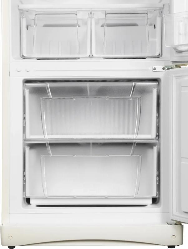 Холодильник STINOL STS 150 E с климатическим классом N имеет двухкамерную конструкцию с нижним расположением морозильной камеры. Общий объем составляет 263 литра, из которых 191 литр приходится на холодильную камеру и 72 литра на морозильную. Температура в холодильном отделении варьируется до 8 °C, в морозильнике поддерживается от -16 °C до -26 °C. Холодильная камера оснащена тремя стеклянными полками и двумя ящиками с капельной системой размораживания. Морозильное отделение содержит два ящика с ручным размораживанием и обеспечивает мощность замораживания до 2 кг/сутки. Управление электромеханическое. При отключении электричества сохраняет температуру до 15 часов. Годовое энергопотребление составляет 401.5 кВт*ч, класс энергоэффективности B. Используется хладагент R600a. Корпус выполнен из металла с LED подсветкой внутри. На дверце расположены три полки. Направление открывания двери справа. В комплекте предусмотрены регулируемые по высоте ножки. Цвет бежевый. Размеры (ШхВхГ) 60 х 150 х 62 см. Вес 56.2 кг.