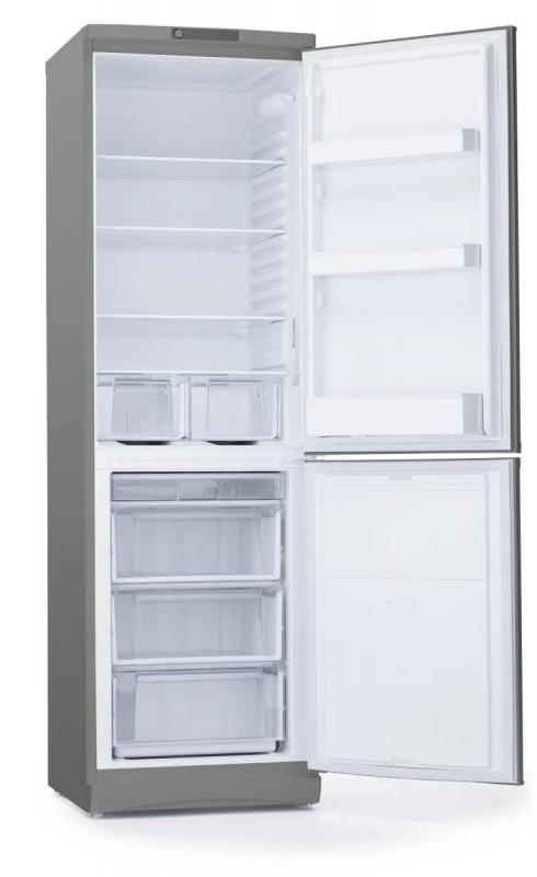 Холодильник STINOL STS 200 G двухкамерный с нижним расположением морозильной камеры. Общий объем составляет 363 литра, полезный - 341 литр. Холодильное отделение содержит 235 литров общего объема и 233 литра полезного, оснащено капельной системой размораживания, четырьмя стеклянными полками и двумя ящиками. Морозильная камера объемом 128/108 литров имеет ручную разморозку, три ящика и способность замораживать до 2 кг продуктов в сутки. Температурный режим холодильной камеры от +8°C, морозильной от -26°C до -16°C. Управление электромеханическое, предусмотрен класс энергопотребления B при годовом расходе 496 кВт*ч. При отключении питания поддерживает температуру до 19 часов. Двери металлические с тремя полками, оснащены LED подсветкой. Компрессор один, стандартного типа. Корпус серебристого цвета со сторон открывания дверей вправо. Возможна регулировка ножек и перевешивание дверей. Размеры изделия 60х200х62 см, вес 74.4 кг.