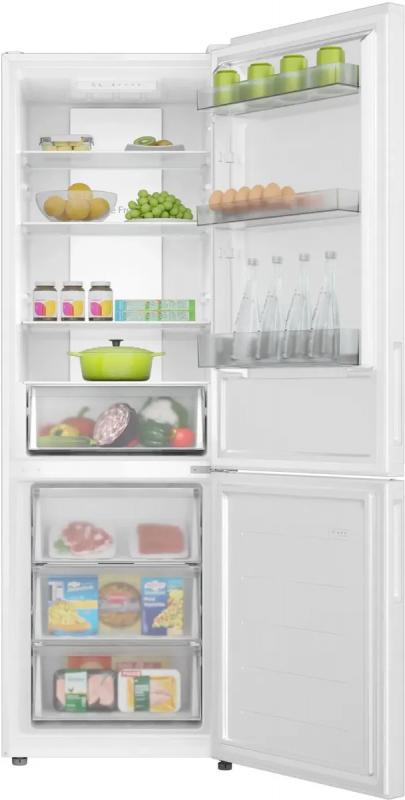 Холодильник двухкамерный CANDY CFN6185W — с нижним расположением морозильной камеры, объемом 298 л (холодильная — 207 л, морозильная — 91 л). Обе камеры оснащены системой No Frost. Управление электронное, с внутренним дисплеем. Температурный диапазон холодильной камеры: 2–8 °С. Мощность замораживания — 12 кг/сут. Класс энергопотребления A, годовое потребление — 374 кВт·ч. Хладагент R600a, один стандартный компрессор. Функции: режим отпуск, суперохлаждение, звуковая индикация незакрытой двери. Двери перевешиваемые, открываются вправо, материал — металл. Полки холодильной камеры из закаленного стекла, на дверце — 3 полки. В морозильной камере 3 ящика. Уровень шума 39 дБ. Работает при напряжении 220 В, частота 50 Гц. Вилка евро. Подсветка LED. Хранение при отключении — 10 ч. Цвет белый. Габариты 59,5×185×59 см, вес 62 кг.