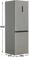 Холодильник двухкамерный GORENJE NRKP61EA2XL4 — с нижней морозильной камерой, общим объемом 320 л (холодильная — 210 л, морозильная — 110 л), системой No Frost Plus, электронным управлением и внешним дисплеем. Имеет две двери с возможностью перевешивания, три полки из закаленного стекла в холодильной камере, два ящика, зону свежести FreshZone, одну полку и два ящика в морозильной камере, три полки на дверце. Оснащен режимами отпуск и FastFreeze, индикацией температуры и звуковым сигналом незакрытой двери. Класс энергопотребления A++, потребление — 240 кВт·ч/год, хранение при отключении — 17 часов. Компрессор один, уровень шума 38 дБ. Ножки регулируемые, дверь открывается вправо. Цвет корпуса — серебристый металлик. Габариты: 59,5 х 185 х 59,2 см, вес нетто — 59 кг.