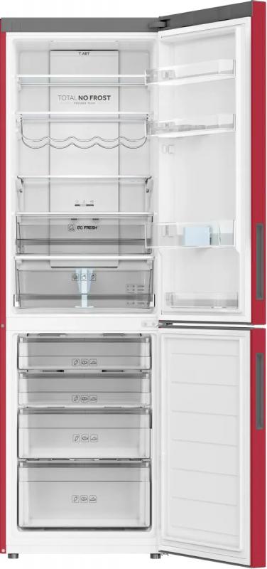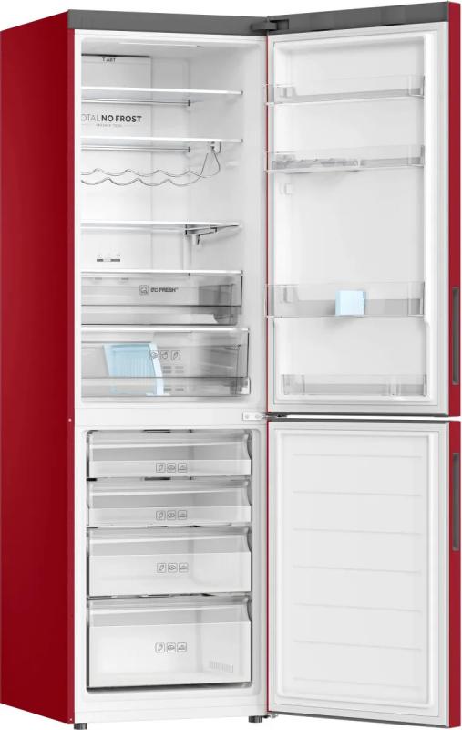 Холодильник двухкамерный HAIER C2F636CRRGU1 — модель с нижней морозильной камерой, оснащённая электронным управлением и внешним дисплеем. Общий объём — 364 л (холодильная камера — 256 л, морозильная — 108 л). Обе камеры работают по технологии No Frost. В холодильном отделении — 4 полки из закалённого стекла, 2 ящика и зона свежести, в морозильном — 4 ящика. Поддерживает функции суперохлаждения, суперзаморозки, режима «отпуск» и управления со смартфона. Оснащён системой Multi Air Flow, LED-подсветкой, индикацией открытой двери и температуры. Климатический класс — SN/ST, уровень шума — 39 дБ, класс энергопотребления — A+ (342 кВт·ч/год). Двери перевешиваемые, ножки регулируемые. Цвет корпуса — красный. Габариты: 59,5 × 190,5 × 67,2 см.