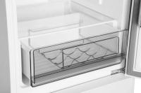 Холодильник HYUNDAI CC35083F белое стекло с двухкамерной компоновкой и нижним расположением морозильной камеры. Общий объем составляет 375 литров, из них полезный объем 335 литров. В холодильном отделении располагаются 4 стеклянные полки, один ящик и три полки на дверце. Морозильная камера включает три ящика с мощностью замораживания до 7 кг в сутки. Система No Frost реализована в обеих камерах. Управление осуществляется сенсорным способом, внешний дисплей отображает актуальную информацию. Прибор относится к климатическим классам N, SN, ST и имеет класс энергопотребления A+ с годовым расходом 303 кВт*ч. Автономное сохранение холода при отключении электроэнергии достигает 10 часов. Хладагент R600a весом 46 г обеспечивает работу компрессора. Дверцы выполнены из стекла белого цвета. Габариты составляют 59.5 x 195.3 x 63.5 см, вес - 70 кг.