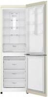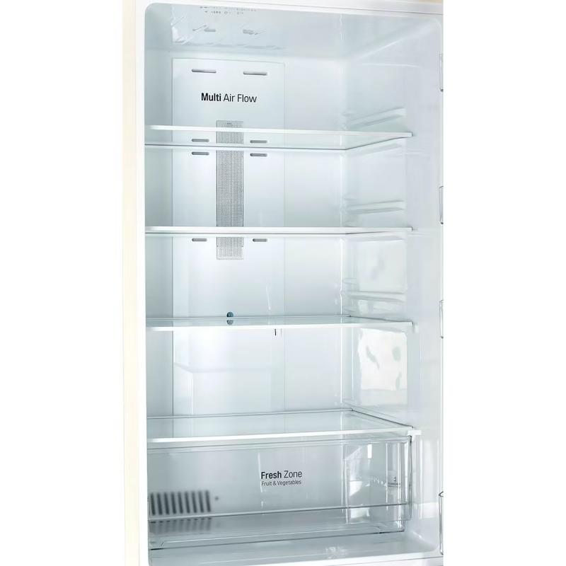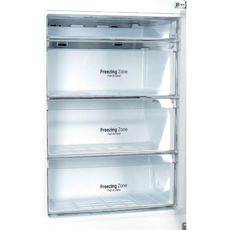 Холодильник двухкамерный LG GA-B419SEUL с нижним расположением морозильной камеры имеет общий объем 354 литра и полезный объем 302 литра. Управление электронное с внешним дисплеем. Холодильная камера объемом 230 литров оснащена системой Total No Frost, четырьмя стеклянными полками и одним ящиком. Морозильное отделение на 124 литра содержит четыре ящика и функцию суперзаморозки. Инверторный компрессор работает на хладагенте R600a. В модели реализованы система многопоточного охлаждения Multi Air Flow, технология зоны свежести Fresh Zone и защита от детей. Присутствует визуальная индикация температуры, открытой двери и отключения электропитания. Двери из нержавеющей стали имеют глянцевую поверхность с защитой от отпечатков пальцев. Климатический класс SN-ST позволяет работать при температуре окружающей среды от +10°C до +38°C. Годовое энергопотребление составляет 277 кВт*ч, класс энергоэффективности A+. При отключении питания поддерживает температуру до 16 часов. Уровень шума не превышает 39 дБ. Габариты (ШхВхГ): 59.5 х 190.7 х 65.5 см, вес 66 кг.