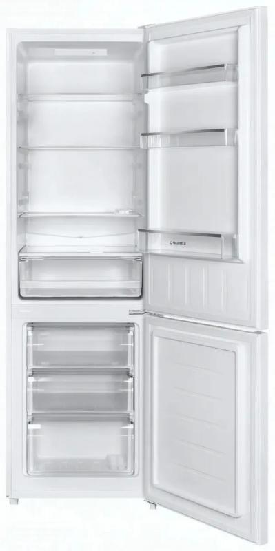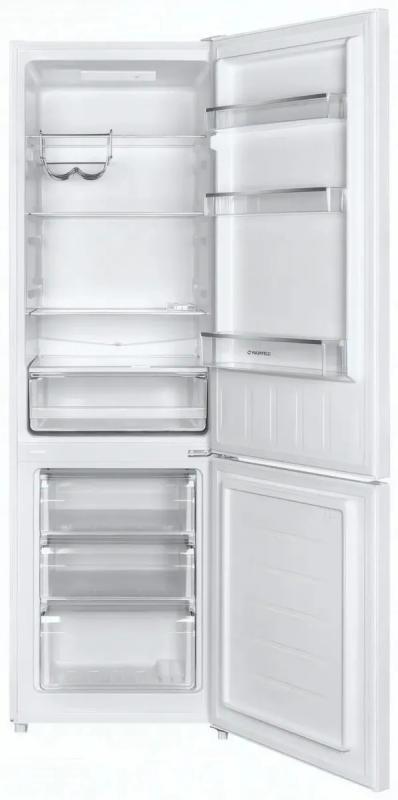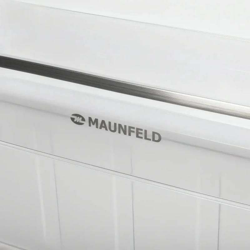 Холодильник двухкамерный MAUNFELD MFF176SFW — с нижней морозильной камерой. Общий полезный объем — 262 л (холодильная камера — 187 л, морозильная — 75 л). Климатический класс — N, SN, ST, T. Электронное управление, функция суперохлаждения, индикация температуры, антибактериальное покрытие, технология Humidity Control и Smart Frost. Холодильная камера оснащена 4 стеклянными полками и 1 ящиком, морозильная — 3 ящиками. Мощность замораживания — 3,5 кг/сут. Уровень шума — 39 дБ. Класс энергопотребления — A+ (250 кВт·ч/год). Хладагент — R600a. Двери с нулевым зазором, перевешиваемые, открывание вправо, 3 полки на дверце. Материал дверей — металл, поверхность — матовая. Габариты: 54×176×55 см.