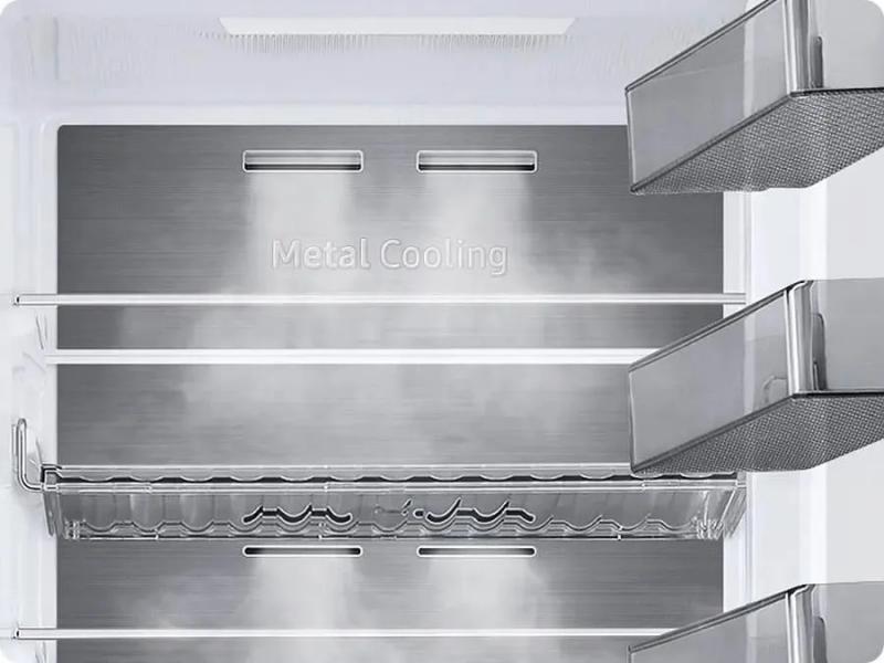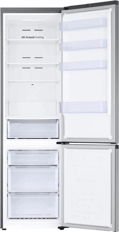 Холодильник SAMSUNG RB38C600DSA/EF двухкамерный с нижним расположением морозильной камеры. Общий объем 390 л, холодильная камера 276 л, морозильная 114 л. Система размораживания No Frost в обоих отделениях. Электронное управление, инверторный компрессор с хладагентом R600a. Класс энергопотребления D, годовое потребление 211 кВт*ч. В холодильном отделении 5 стеклянных полок и один ящик, в морозильном - три ящика. Мощность замораживания 8 кг/сутки, автономное сохранение холода до 9 часов. Функции суперзаморозки Power Freeze и суперохлаждения. Звуковая сигнализация незакрытой двери, LED подсветка. Четыре полки на металлической дверце, открывание вправо. Климатические классы N, SN, ST, T. Уровень шума 35 дБ. Корпус серебристого цвета. Габариты 59.5 х 203 х 65.8 см, вес 72 кг.