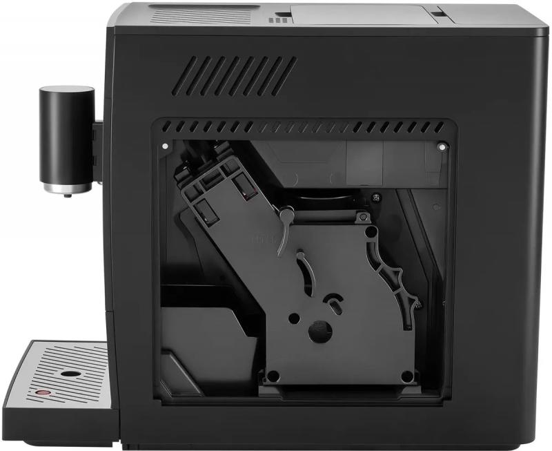 Кофемашина HYUNDAI HAM-4402 работает с зерновым кофе и оснащена встроенной жерновой кофемолкой конической формы из нержавеющей стали. Мощность устройства составляет 1350 Вт, давление помпы - 20 бар. Объем резервуара для воды равен 1.1 литра, контейнера для зерен - 100 грамм. Машина позволяет регулировать крепость напитка, его объем в диапазоне 20-250 мл, степень помола на пяти уровнях и температуру. Предусмотрено одновременное приготовление двух порций. Автоматически готовит американо и эспрессо. Имеется функция предварительного заваривания, автоматического выключения, автоочистки от накипи и программа самоочистки. Корпус изготовлен из пластика и металла черного цвета. Съемные элементы включают блок заваривания, дренажный отсек, контейнер для отработанного кофе и резервуар для воды. Есть информационный дисплей, регулируемый по высоте дозатор кофе и функция подогрева чашек. Энергосберегающий режим присутствует. Габариты 30x25x40 см, вес 8 кг.