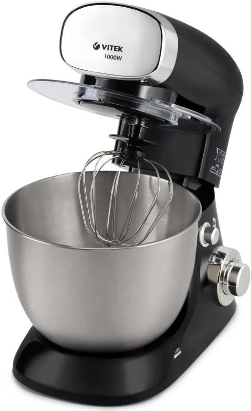Кухонная машина VITEK VT-1437 имеет мощность 1000 Вт и шесть скоростных режимов. Оснащен планетарным механизмом вращения насадок. В комплект входит основная чаша объемом 4 литра и три насадки для приготовления различных блюд. Корпус изготовлен из пластика черного цвета. Модель устойчива к нагрузкам и проста в обслуживании. Габариты устройства составляют 35х25х30 см, вес 3.9 кг.