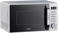 Микроволновая печь HAIER HMB-DG208SA с объемом камеры 20 литров оснащена электронным управлением и дисплеем. Мощность микроволн составляет 800 Вт, гриля - 1000 Вт. Кварцевый гриль работает в двух режимах: отдельно и совместно с микроволнами. Имеется 5 уровней регулировки мощности, функция блокировки от детей и звуковой сигнал окончания приготовления. Внутренняя камера покрыта жаропрочной эмалью, диаметр поворотного стола 255 мм. Дверца открывается справа налево с помощью ручки. В комплект входит решетка для гриля. Длина сетевого кабеля 1 метр. Цвет корпуса серебристый. Размеры прибора 44х25.9х35.6 см, вес 10.2 кг.