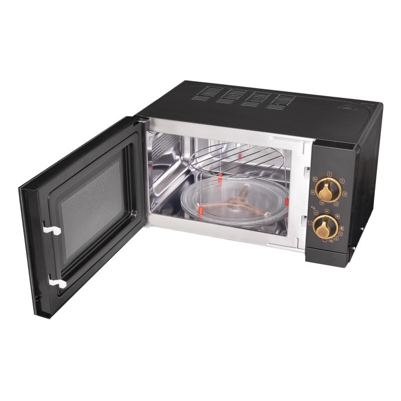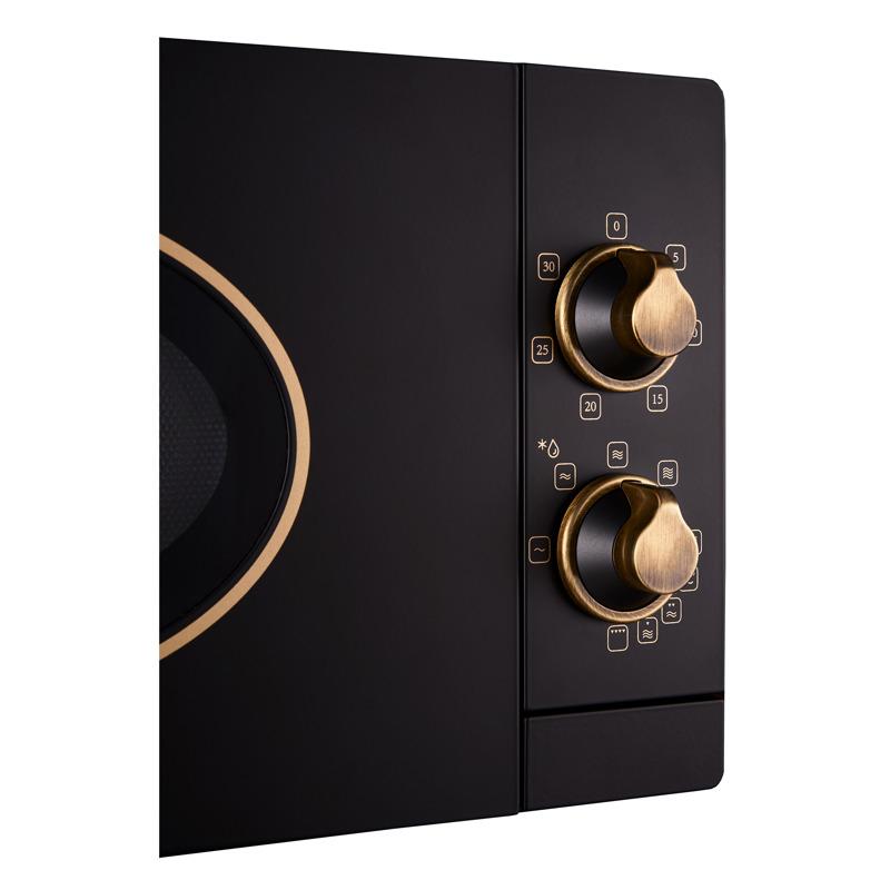 Микроволновая печь KORTING отдельностоящая, ретро, объем 20 л, механическое управление, гриль, разморозка, таймер, комбинированное приготовление, цвет черный/бронза.