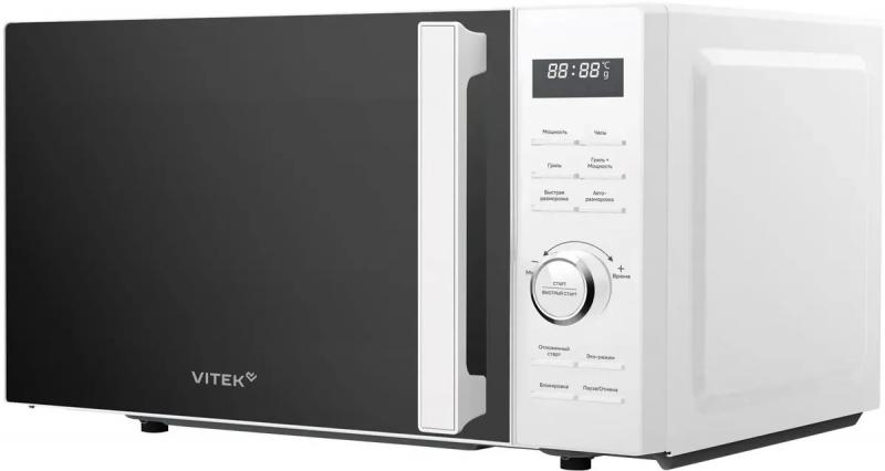 Микроволновая печь VITEK VT-MW1825 имеет объем 25 литров и мощность 900 Вт. Оборудована электронным управлением и оснащена дисплеем с белым свечением. Дверца открывается с помощью ручки. Предусмотрено 14 уровней регулировки мощности. Модель оснащена грилем мощностью 1000 Вт. Включает 9 автоматических программ, в том числе разморозку по весу, ускоренную разморозку и экспресс-приготовление. Имеется функция блокировки от детей, задержка пуска, память рецептов и таймер на отключение до 95 минут. Возможен быстрый старт, добавление 30 секунд и регулировка мощности. В комплект входит решетка для гриля. Цвет корпуса белый. Габариты прибора составляют 48.3 х 28.1 х 42.5 см, вес 14 кг.