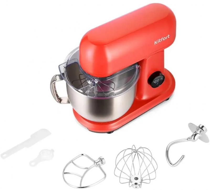 Миксер планетарный Бренд KITFORT, модель КТ-3473-1 — с мощностью 1500 Вт и 8 скоростями, оснащённый импульсным режимом и дисплеем. Корпус выполнен из литого алюминия, чаша объёмом 5 л изготовлена из нержавеющей стали. Устройство поддерживает планетарное вращение, обеспечивая равномерное перемешивание. В комплект входят три насадки: венчик для взбивания, крюки для теста и лопатка для перемешивания, а также защитный обод и крышка для чаши. Миксер установлен на прорезиненные ножки, длина кабеля — 1 м. Размеры (Ш×В×Г): 378 × 339 × 275 мм, вес — 6,1 кг.