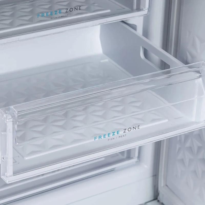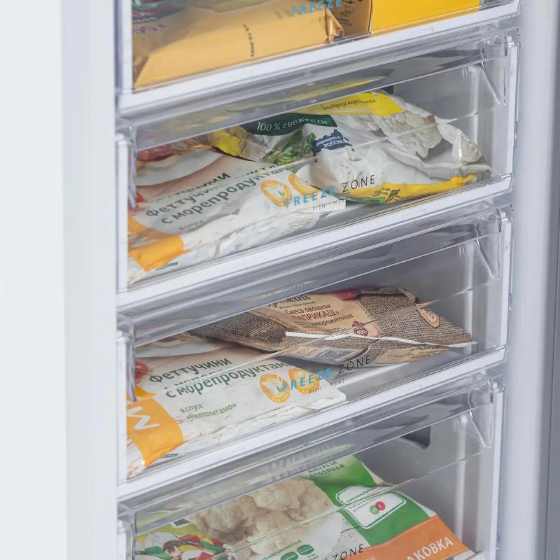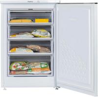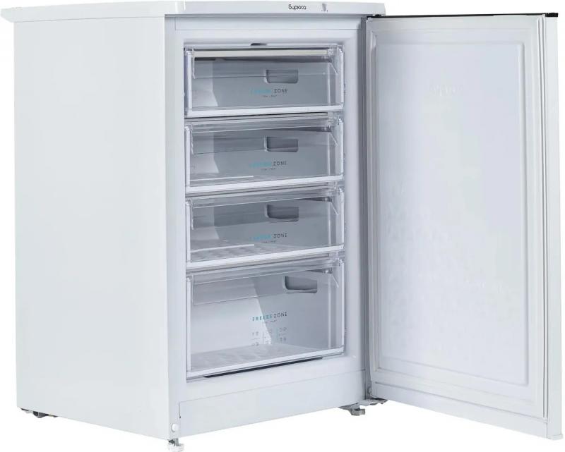Морозильная камера БИРЮСА 514 с механическим управлением и одним компрессором работает на хладагенте R600a. Общий объем составляет 110 литров, распределенных по четырем ящикам. Мощность замораживания достигает 12 кг/сутки при минимальной температуре -18 °С. Годовое потребление энергии составляет 183 кВт*ч, что соответствует классу энергопотребления A+. При отключении электричества продукты сохраняются в течение 10 часов. Камера оснащена звуковой сигнализацией повышения температуры и имеет ручную систему размораживания. Уровень шума не превышает 42 дБ. Корпус выполнен в белом цвете с одной дверью, которую можно перевешивать. Размеры ШхВхГ составляют 58 х 87 х 62 см, вес 34 кг.