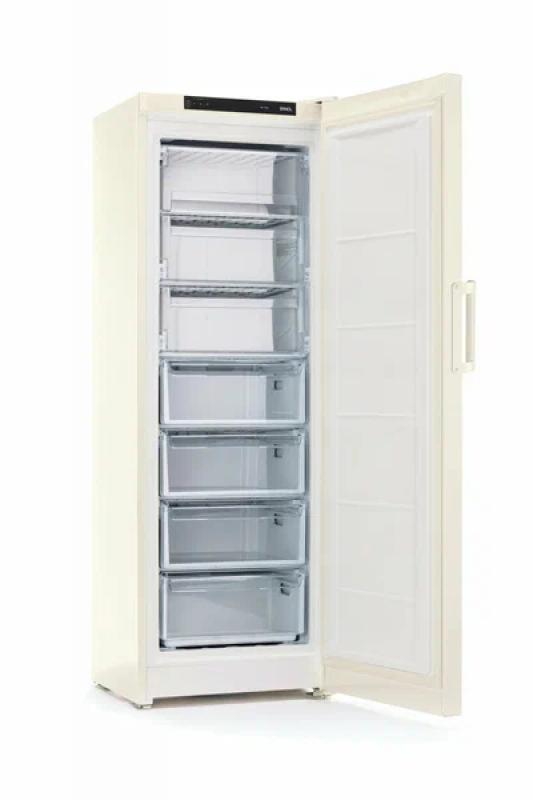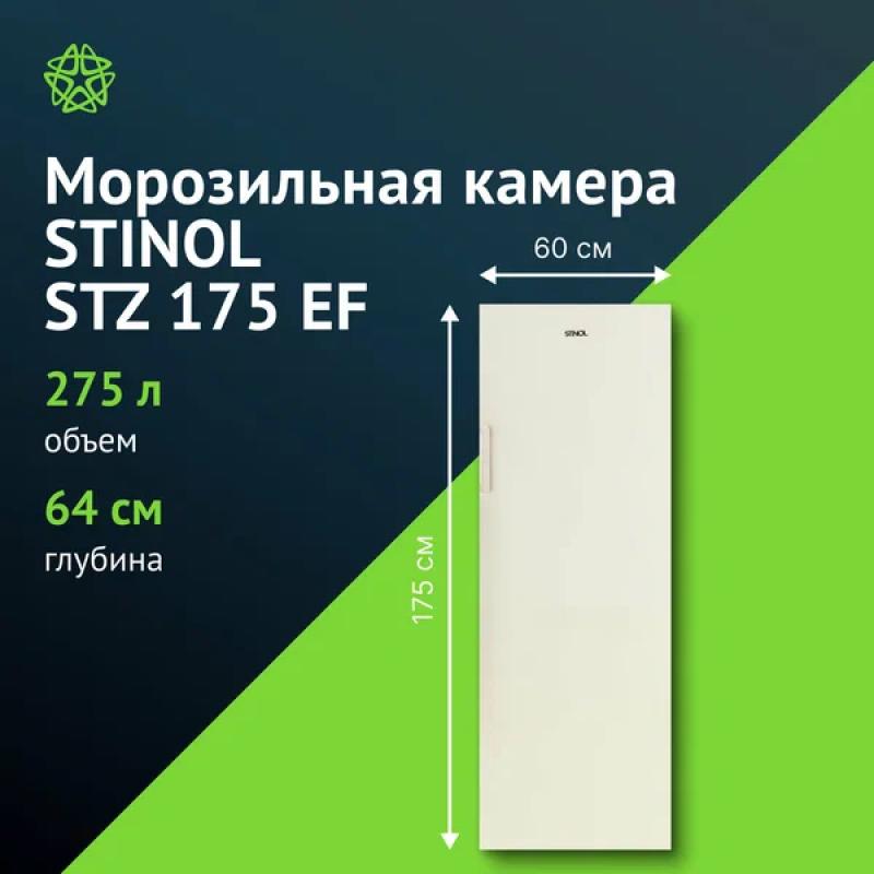 Морозильный шкаф STINOL STZ 175 EF обладает общим объемом 275 литров и полезным объемом 261 литр. Устройство имеет механическое управление и оснащено системой No Frost. Мощность замораживания составляет 12 кг/сутки, минимальная температура достигает -18 °С. Прибор относится к классу энергопотребления B с годовым потреблением энергии 307 кВт*ч. Хладагент R600a обеспечивает эффективную работу одного компрессора. В конструкции предусмотрены перевешиваемые двери из металла и четыре пластиковых ящика. Морозильник сохраняет температуру при отключении питания до 15 часов. Уровень шума не превышает 43 дБ. Габариты модели составляют 60х175х64 см, вес 63.4 кг.