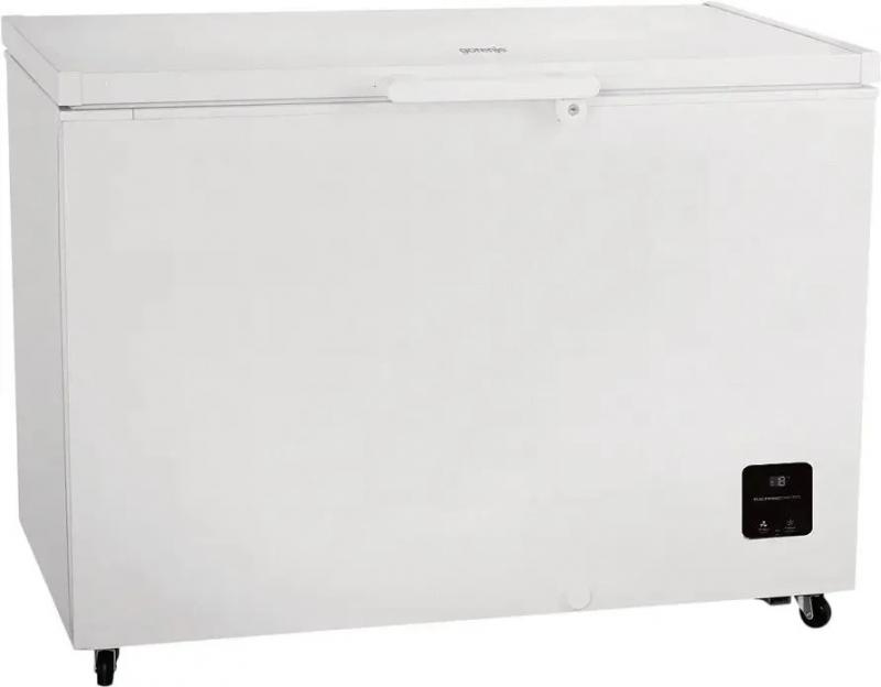 Морозильная камера GORENJE FHC30A6W с общим объемом 297 литров работает в климатических классах N, SN, ST, T. Минимальная температура достигает -24 °C, система размораживания ручная. Мощность замораживания составляет 15 кг/сутки, время хранения при отключении питания 42 часа. Оснащена одним компрессором, используется хладагент R600a. Уровень шума 42 дБ, управление электронное. Дверца открывается вверх, имеется одна дверь и одна камера с двумя корзинами. Класс энергопотребления A, годовое потребление энергии 356 кВт*ч, потребляемая мощность 140 Вт. Есть внутреннее освещение, колеса для перемещения, функция суперзаморозки, индикация работы и температуры, а также замок. Цвет белый. Размеры (ШхВхГ): 111.4 х 84.7 х 63 см, вес 37 кг.