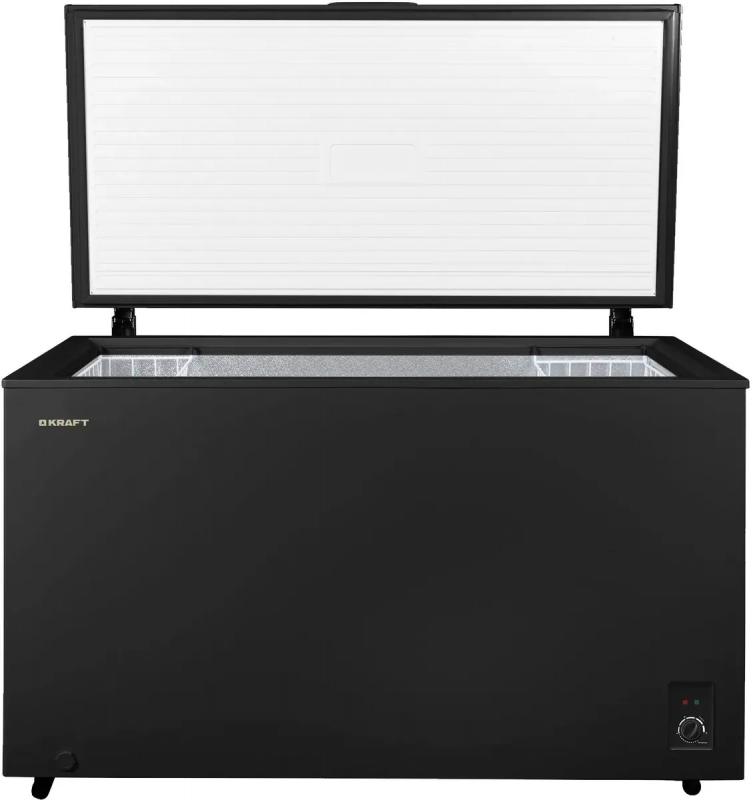 Морозильная камера KRAFT BD (W)-460BRX с полезным объемом 422 литра и общим объемом 460 литров подходит для использования в помещениях с температурой от -10°C до +43°C. Модель оснащена механическим управлением и системой ручного размораживания. Хладагент R600a обеспечивает эффективную работу устройства. Мощность замораживания достигает 28 кг/сутки. Прибор имеет класс энергопотребления A+ с годовым потреблением 324.85 кВт*ч и максимальной потребляемой мощностью 150 Вт. Однокамерная конструкция включает одну дверцу с верхним открыванием и две корзины для хранения продуктов. Температурный режим поддерживается в диапазоне от -24°C до +5°C. Функции суперзаморозки и режима холодильника расширяют возможности использования техники. Визуальная индикация оповещает об отключении электропитания. Уровень шума составляет 44 дБ. Корпус выполнен из металла черного цвета. Габариты модели: ширина 136.5 см, высота 83.5 см, глубина 73 см. Вес устройства - 53 кг.