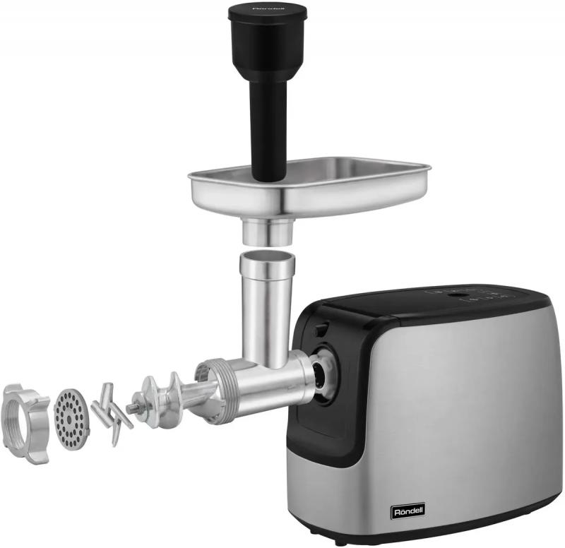 Мясорубка RONDELL RDE-1458 имеет мощность 3000 Вт с защитой от перегрузок при блокировке вала. Устройство оснащено шестью скоростными режимами и функцией реверса для обратного хода. В комплект входят три перфорированных диска для фарша разной степени измельчения, насадка для изготовления колбас и насадка для кеббе. Лоток выполнен из нержавеющей стали, корпус сочетает металл и пластик. Прибор способен обрабатывать до 3.5 кг продукта в минуту. Габариты устройства составляют 191 х 351 х 397 мм, вес 4.2 кг.