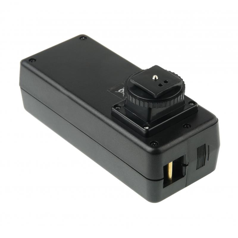 Синхронизатор ИК Falcon Eyes TR-1. Устанавливается в горячий башмак камеры и запускает вспышки со светоловушкой с помощью инфракрасного импульса. Работает на расстоянии до 10 м при прямой видимости. Напряжение на синхроконтактах менее 10 В. Питание от 2 батареек AA. Вес: 95 г.