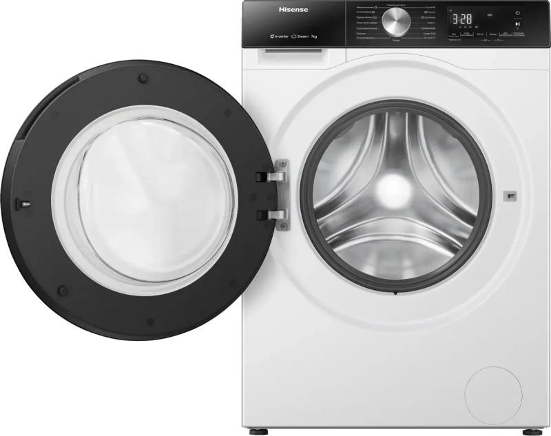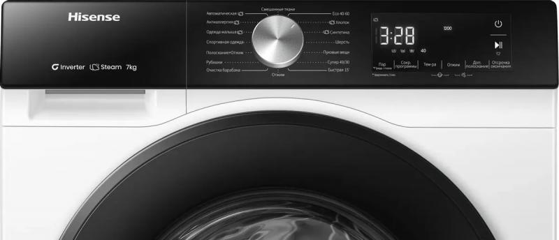 Стиральная машина Hisense WF3S7021BW2 с фронтальной загрузкой на 7 кг белья оснащена инверторным мотором и электронным управлением. Диаметр люка 35 см, открывается влево на 135°. Максимальная скорость отжима 1200 об/мин, уровень шума при стирке 57 дБ, при отжиме 72 дБ. Расход воды 36 л, объем барабана 46 л. Есть защита от детей, контроль дисбаланса, таймер отсрочки до 24 часов. Включает 15 программ, в том числе паровую обработку и самоочистку SterilTub. Температура стирки 20-90°C. Классы: стирки A, отжима B, энергопотребления A. Потребляемая мощность 1600 Вт. Размеры 59.5х84.5х45 см, вес 59 кг. Цвет белый, люк черный.