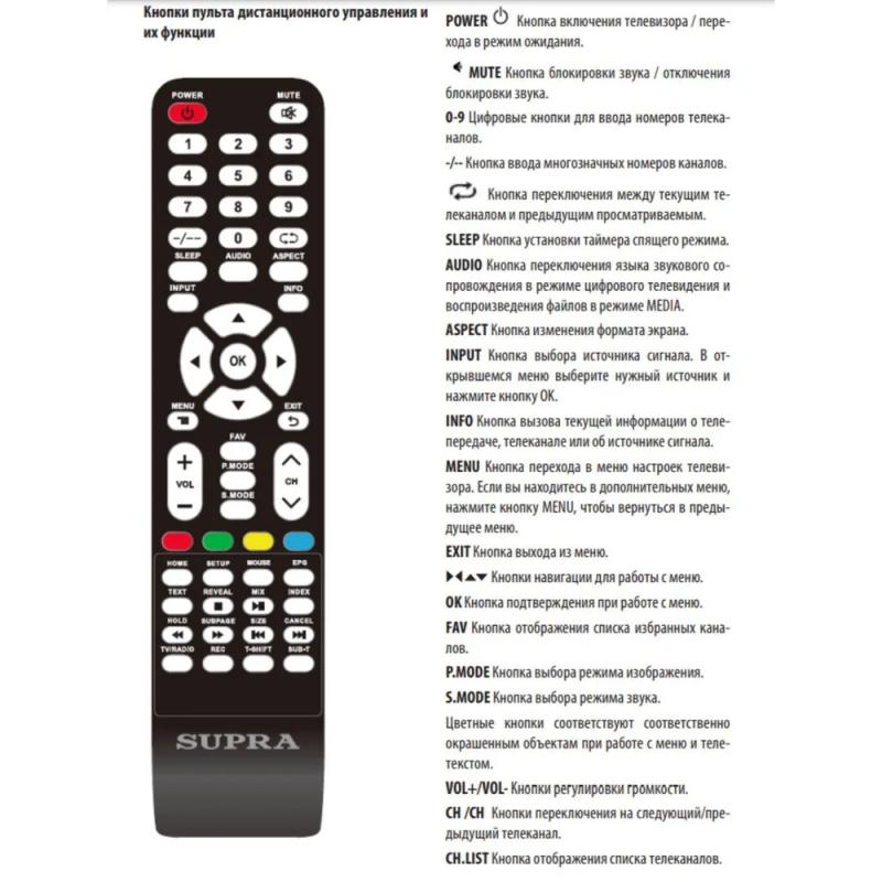 Телевизор SUPRA STV-LC43ST0045F с диагональю 43 дюйма и разрешением 1920x1080 оснащен LED-панелью с соотношением сторон 16:9. Устройство имеет яркость 260 кд/м2 и контрастность 120000:1 при времени отклика пикселя 7 мс. Углы обзора составляют 178 градусов по горизонтали и вертикали, частота обновления экрана 60 Гц. Встроенные тюнеры поддерживают стандарты DVB-T, DVB-T2 и DVB-C. Акустическая система представлена двумя динамиками мощностью 10 Вт каждый. Телевизор работает на процессоре ARM Cortex-A53 с операционной системой Android 9.0 и имеет 1 ГБ оперативной памяти и 8 ГБ встроенной. Среди интерфейсов представлены 2 HDMI, 2 USB, RJ-45, CI+/PCMCIA, S/PDIF коаксиальный, а также композитный видеовход и аудиовход. Поддерживается воспроизведение различных форматов медиафайлов. Размер VESA 200x200. Потребляемая мощность в рабочем режиме составляет 75 Вт. Размеры без подставки 968х564х87 мм, вес 11.4 кг.