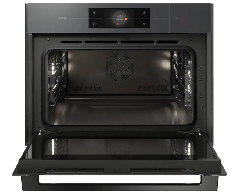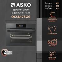 Духовой шкаф электрический ASKO OCS8478GG, компактный. Мощность и максимальная температура нагрева составляют 230 градусов. Оснащен полноцветным сенсорным TFT-дисплеем и 132 автоматическими программами. Включает 11 режимов нагрева включая ProRoast и Су-вид. Имеется функция приготовления на пару и галогеновое освещение. Дверца содержит 4 стекла с плавным открыванием и закрыванием. Очистка выполняется паром, предусмотрены телескопические направляющие на двух уровнях и термощуп. Цвет жемчужно-серый. Класс энергоэффективности A+. Ширина 59.8см глубина 56.8см высота 45.6см. Вес 40кг.