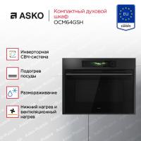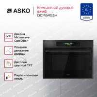 Духовой шкаф Asko OCM64GSH электрический, с СВЧ. Мощность 1 кВт, максимальная температура нагрева 250°С. Количество программ 11, включая автоматические и комбинированные режимы с микроволнами. Оснащен TFT-дисплеем, таймером, функцией AquaClean и системой Microwave CoolDoor. В комплект входят стеклянный противень, решетка и эмалированный противень. Цвет графит. Класс энергоэффективности A. Размеры 45х59.7х56.4см, вес 34.8кг.