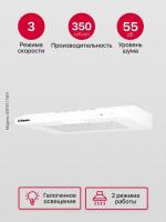 Настенная, ширина 50 см, мощность: 108 Вт, режимы работы: отвод / рециркуляция, управление: ползунковое, возможность установки активного фильтра, алюминиевый фильтр, уровень шума до 55 дБ, белый.