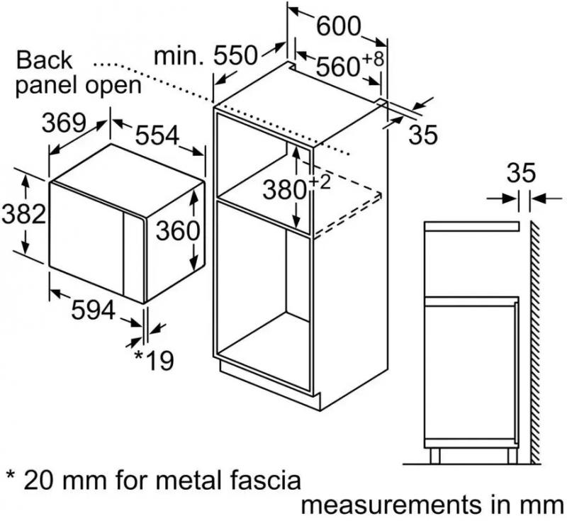 Встраиваемая микроволновая печь BOSCH BEL554MW2 — с сенсорным управлением на английском языке, оснащённая кнопкой +30 секунд и пятью ступенями регулировки мощности. Мощность микроволн составляет 900 Вт, кварцевого гриля — 1000 Вт. Устройство имеет 8 программ, включая автоматическую разморозку, размораживание по весу и комбинированный режим микроволны с грилем. Дверца открывается кнопкой справа налево, внутреннее покрытие камеры — эмаль, диаметр поворотного стола — 315 мм. Корпус белого цвета с дисплеем и внутренним освещением, в комплекте решётка для гриля. Габариты: 59,4 × 38,2 × 38,8 см, вес: 18,3 кг.