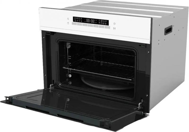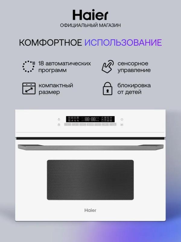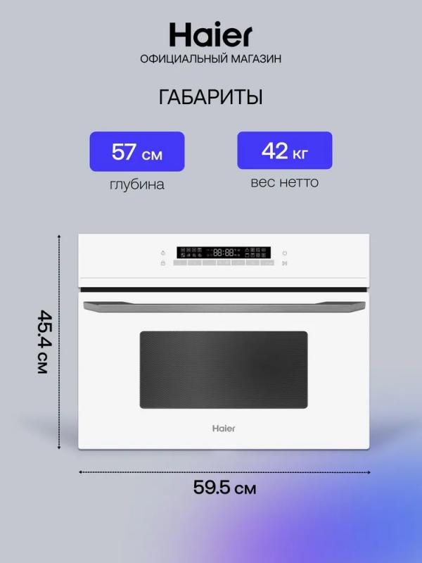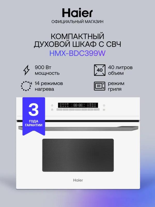 СВЧ-печь HAIER HMX-BDC399W оснащена сенсорным управлением и функцией регулировки мощности. Модель имеет объем 40 л и мощность микроволн 900 Вт. Дверца открывается сверху вниз с помощью ручки. Внутренняя камера покрыта эмалью. Встроенный гриль мощностью 1750 Вт работает в комбинированных режимах с конвекцией и микроволнами. Предусмотрены автоматическая разморозка и разогрев. Корпус оснащен дисплеем, таймером на 1440 минут и защитой от детей. В комплект входит решетка для гриля. Печь выполнена в белом цвете, длина кабеля питания составляет 1 м. Размеры устройства 59.5х45.5х57 см, размеры ниши для встраивания 56.4х45.5х56 см, вес 39 кг.
