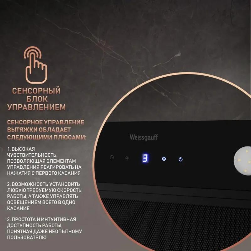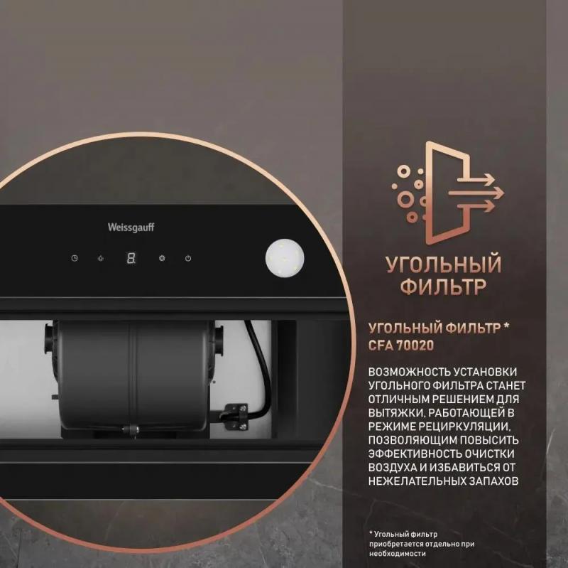Встраиваемая вытяжка WEISSGAUFF Dubhe 600 Touch, управление кнопочное, черный [433182]