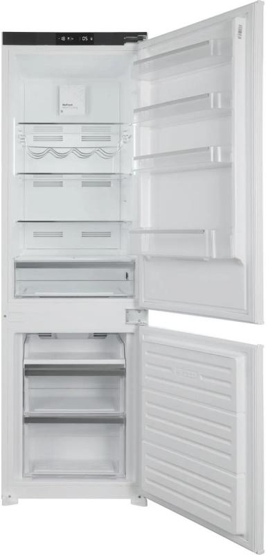 Годовое энергопотребление составляет 283.24 кВт*ч, что соответствует классу энергоэффективности A+. Холодильник работает от электросети с напряжением 220-240 В и частотой 50 Гц. В качестве хладагента используется R600a. Для встраивания требуется ниша размерами 56-57 см в ширину, 177-177.8 см в высоту и 55 см в глубину. Габариты самого прибора составляют 54х177х54.5 см. Корпус выполнен в белом цвете.