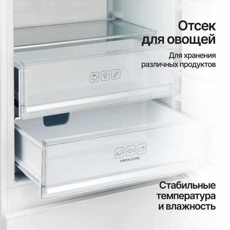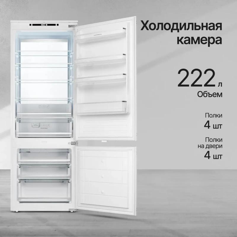 Встраиваемый холодильник Kuppersberg, High-Tech, объем 341 л, скользящий фасад, электронное управление, No Frost, антибактериальный пластик, звуковой сигнал при открытой дверце, перенавешиваемые двери, LED освещение, уровень шума 41 дБ, энергоэффективность А+, цвет белый.