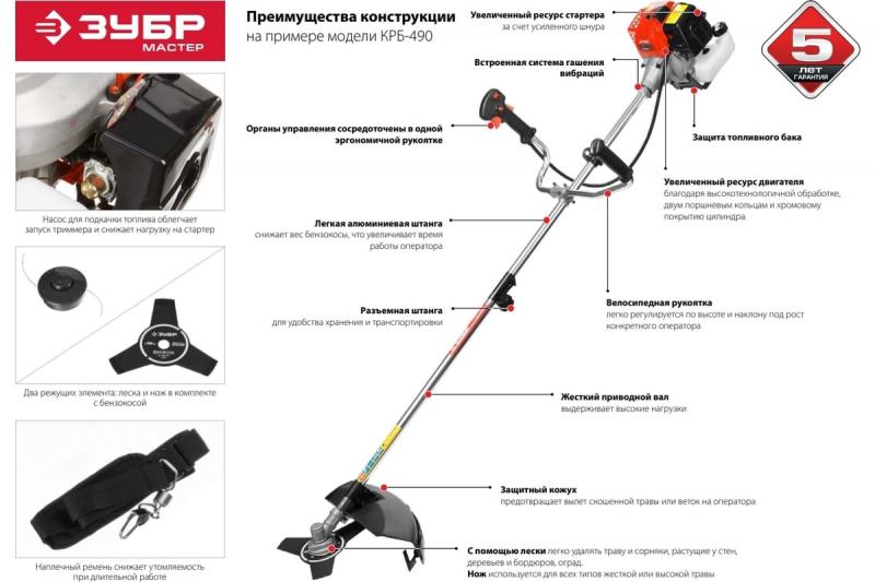 ЗУБР 1.35 кВт, бензиновый триммер (КРБ-490)