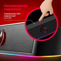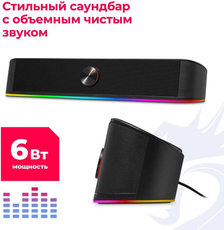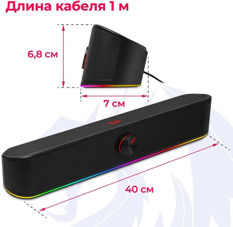 Компьютерная акустика REDRAGON Adiemus 78148 выполнен в акустическом типе 2.0 и имеет черный цвет корпуса из пластика. Модель питается от USB и обладает суммарной звуковой мощностью 6 Вт. Частотный диапазон устройства составляет 150 Гц - 20 КГц, а отношение сигнал/шум равно 65 дБ. Саундбар не комплектуется пультом ДУ, но оснащен светодиодной подсветкой с возможностью выбора режима прикосновением к логотипу Redragon. Регуляторы находятся на передней панели, длина кабеля составляет 1 м. Габариты устройства 400 х 67 х 75 мм, вес 0.75 кг. выполнена в формате 2.0 с питанием от USB и общей мощностью 6 Вт. Частотный диапазон составляет 150 Гц - 20 кГц, отношение сигнал/шум равно 65 дБ. Система не имеет пульта ДУ, регуляторы расположены на передней панели. Корпус изготовлен из пластика черного цвета с подсветкой, управление которой осуществляется через сенсорное нажатие на логотип бренда. Длина соединительного кабеля равна 1 м. Габариты центральной колонки составляют 400 х 67 х 75 мм, вес всей системы - 0.75 кг.