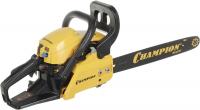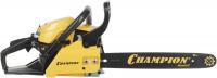 Бензопила Champion 237-16 оснащена двухтактным двигателем мощностью 1.5 кВт (2.04 л.с.). Максимальные обороты составляют 11500 об/мин, холостые - 3000 об/мин. Объем топливного бака 0.31 л, масляного - 0.21 л. Пильная шина длиной 40 см имеет паз шириной 1.3 мм. Цепь с шагом 3/8 дюйма состоит из 56 звеньев, установленных на четырехточечное крепление ведомой звездочки. В комплекте поставляется шина и цепь. Вес бензопилы без шины и цепи 4.7 кг, полный вес 6.63 кг.